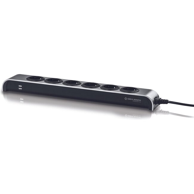 Multiprise de haute qualité avec six prises séparées, logée dans un boîtier robuste en aluminium. Les prises sécurisées pour enfants et mises à la terre sont facilement accessibles grâce à l'angle de montage de 45°. De plus, la Powersocket 505 est équipée d'un interrupteur de sécurité lumineux et de deux ports de chargement USB. Un câble d'alimentation de 1,5 m est inclus.