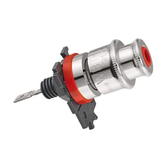 Bevestigingsisolatoren zijn meegeleverd om niet alleen geïsoleerde, maar ook torsiebestendige montage en polariteitsidentificatie van de aansluitingen te verzekeren. In het geval van hi-fi apparaten die sterk worden blootgesteld aan impactgeluid, zoals luidsprekers, wordt het aanbevolen om een extra borgmiddel voor de moer te gebruiken, dat is de vloeistofschroefretentie LOCTITE 4804. Het is gekoppeld aan WBT hightech kunststoffen en het is afneembaar. Bovendien beveelt WBT aan om de WBT-0718 te gebruiken.