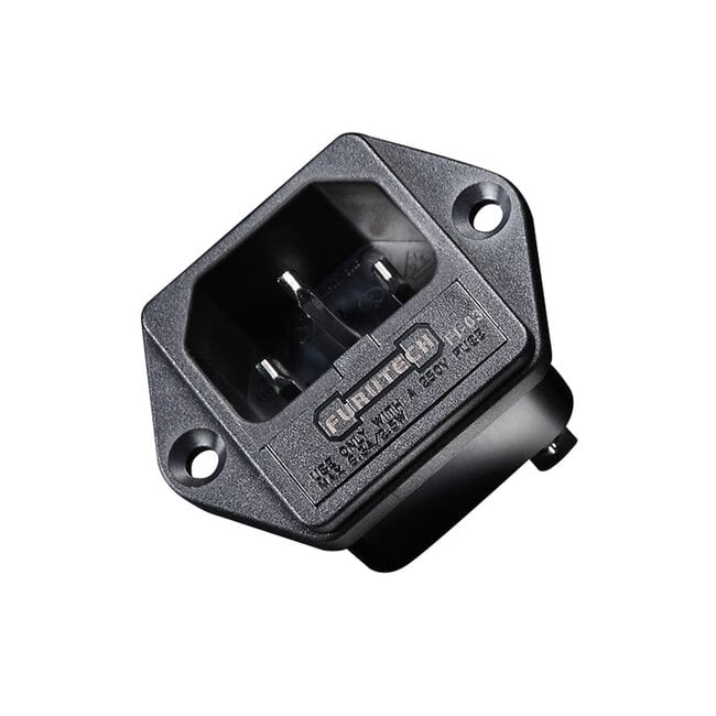 Furutech FI-03 (R) Rhodium IEC inlet met Alpha Copper Alloy, C14-standaard en zekeringhouder. Sterke upgrade voor hifi en netentree. Lees meer.