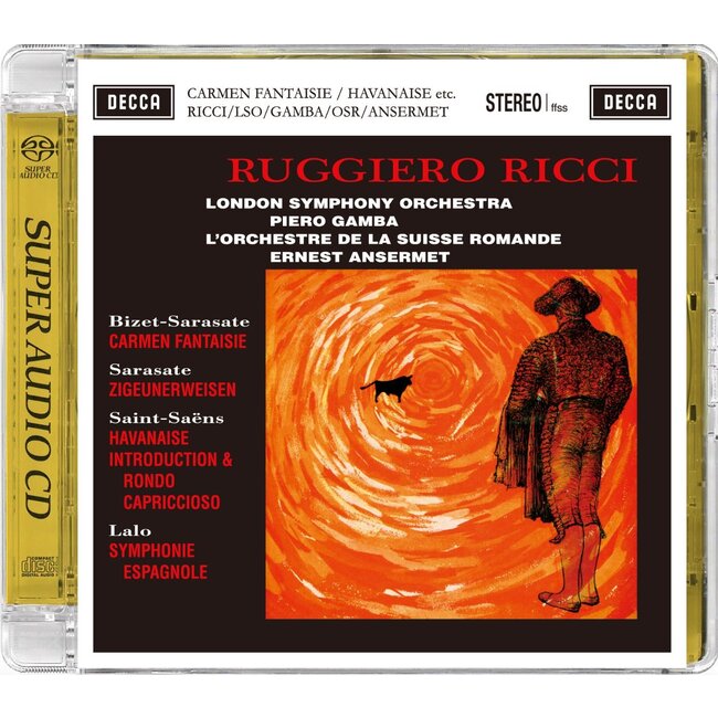 Violisten kunnen in hun carrière niet om de meesterwerken heen die hier zijn samengebracht; Ruggero Ricci laat samen met het London Symphony Orchestra bovendien op indrukwekkende wijze zien dat hij een meester in zijn vak is. Deze prachtige opname van de Carmen Fantaisie, Zigeunerweisen, Havanaise en Symphonie Espagnole werd gemaakt in de Kingsway Hall in Londen in september 1959 onder leiding van Pierino Gamba.