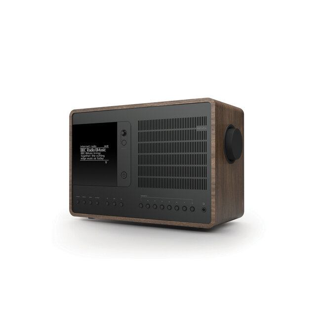 De SuperConnect is een kunstwerk, zowel van binnen als van buiten. De buitenkant is voorzien van Amerikaans walnotenhout en een aluminium voorpaneel, wat zorgt voor een combinatie van elegantie en duurzaamheid. Het grafische OLED-scherm biedt duidelijke informatie over de zender of het nummer, de datum en de tijd. Navigeren door de functies van de radio is een fluitje van een cent dankzij de joystickbediening.